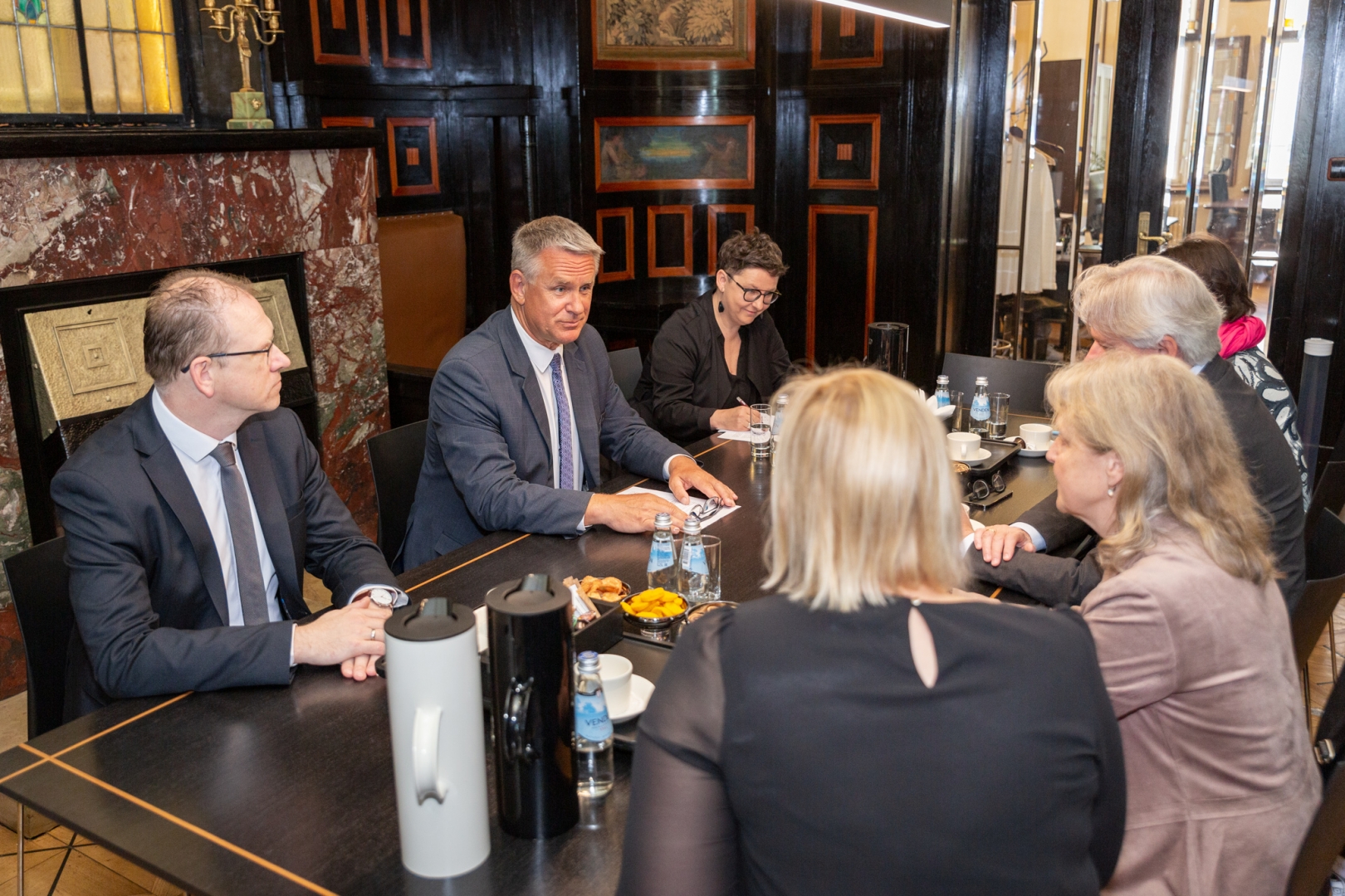 16.06. kultūras ministrs Nauris Puntulis, KM valsts sekretāres vietnieks kultūrpolitikas jautājumos Uldis Zariņš, platformas “Latvian Literature” vadītāja Inga Bodnarjuka - Mrazauskas un KM Nozaru politikas nodaļas eksperte Līga Buševica tikās ar Frankfurtes grāmatu tirgus direktoru Jurgenu Bosu (Juergen Boss) un viesu valsts programmas vadītāju Simoni Būleri (Simone Bühler) iepazīšanās vizītē.