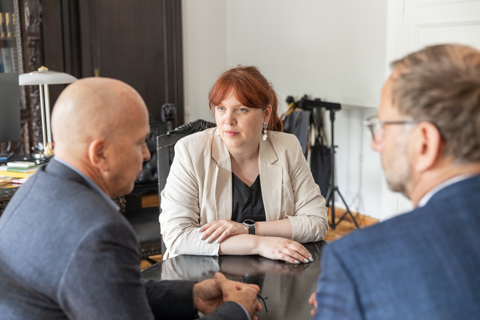 4.06. kultūras ministre Agnese Logina tikās ar Austrālijas žurnālistu un preses brīvības aizstāvi Pēteri Gresti.