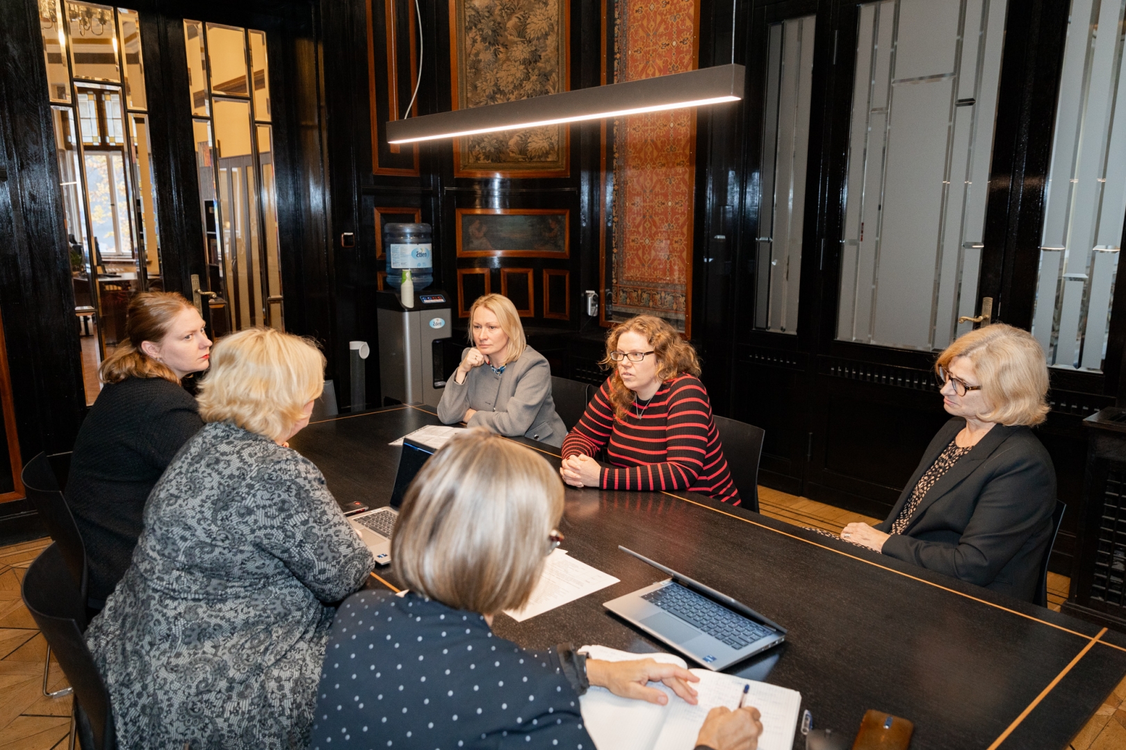Kultūras ministrijas vadība 31. oktobrī tikās ar Rīgas vēstures un kuģniecības muzeja direktori Lieni Johansoni Kuzminu, direktores vietnieci zinātniskajā darbā Ilonu Celmiņu un direktores vietnieci krājuma darbā Agitu Ančupāni, lai pārrunātu neatliekamo remontdarbu veikšanu 3 administratīvajās telpās muzeja ēkās Palasta ielā 2 un Herdera laukumā 4, turpmākos soļus muzeja ēku sakārtošanā 3-5 gadu perspektīvā un risinājumu krājuma pagaidu izvietošanai citās telpās remontdarbu veikšanas laikā.
