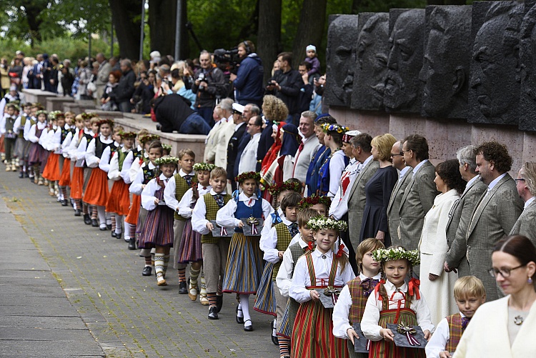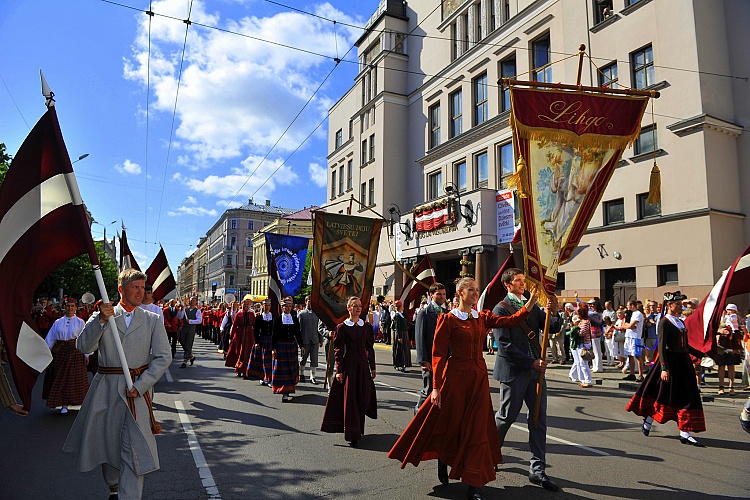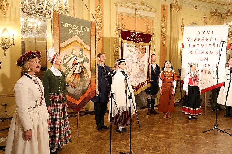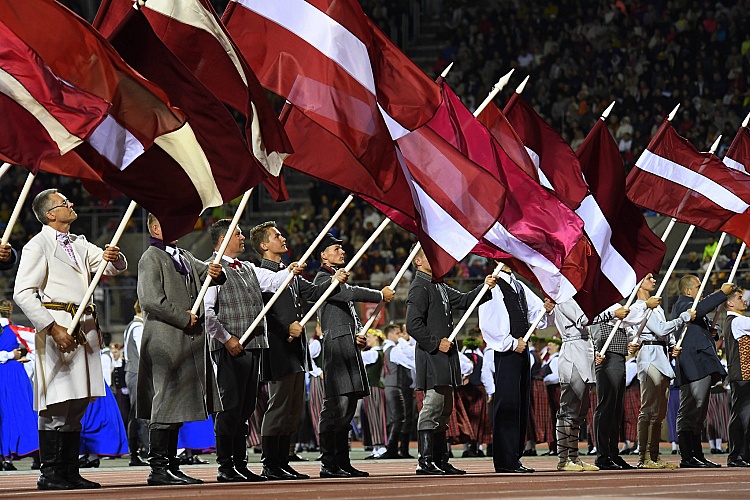 - Dziesmu un deju svētku karogu cildināšana. Foto: Evija Trifanova