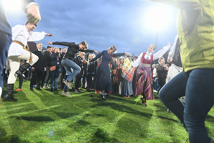 - Danči ar ārvalstu latviešu folkloras kopām. Foto: Evija Trifanova
