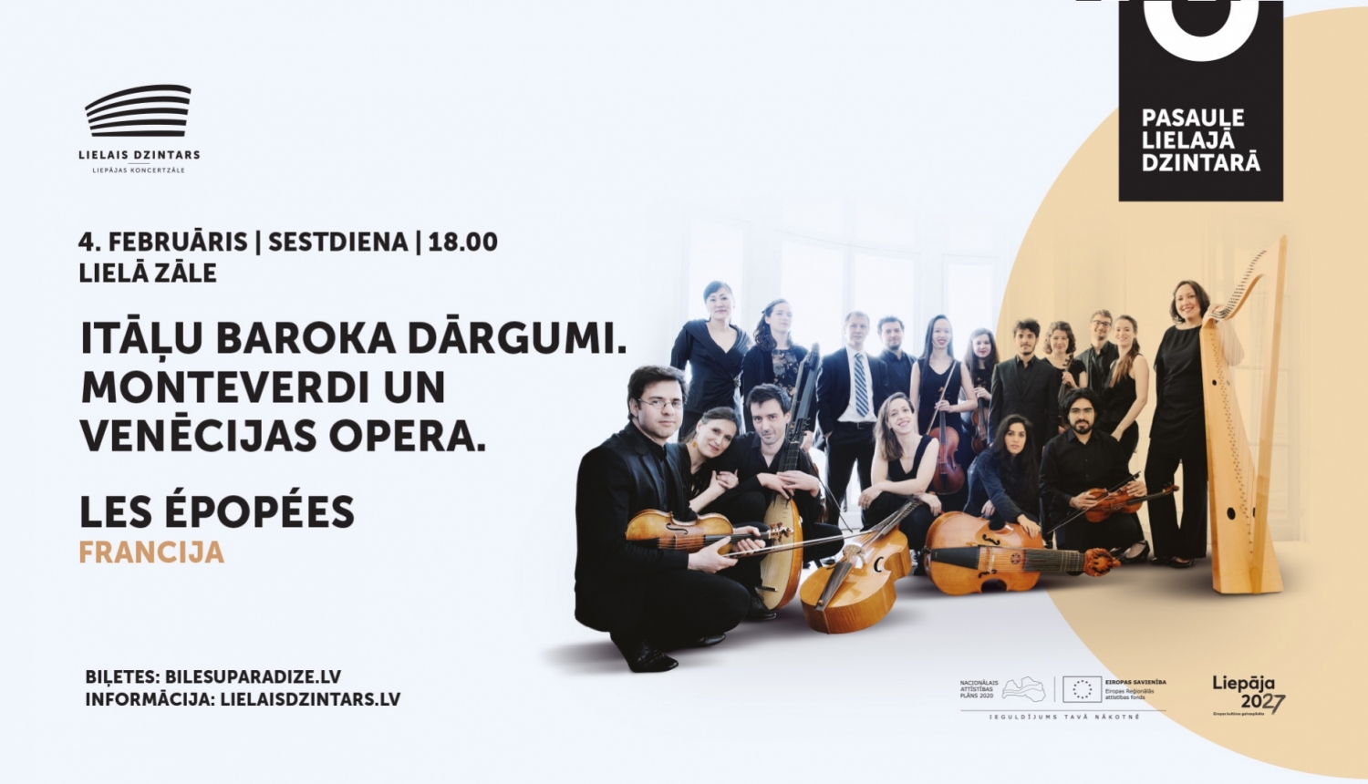 Šo sestdien, 4. februārī plkst. 18.00 līdz ar Versaļas pilī rezidējošā ansambļa “Les Épopées” itāļu baroka opermūzikas koncertu Liepājas koncertzālē atsāksies īpašo notikumu sērija “Pasaule Lielajā dzintarā”, kas jau sesto gadu klausītājus iepazīstina ar Eiropā un pasaulē augsti novērtētiem dažādu žanru izpildītājmāksliniekiem.