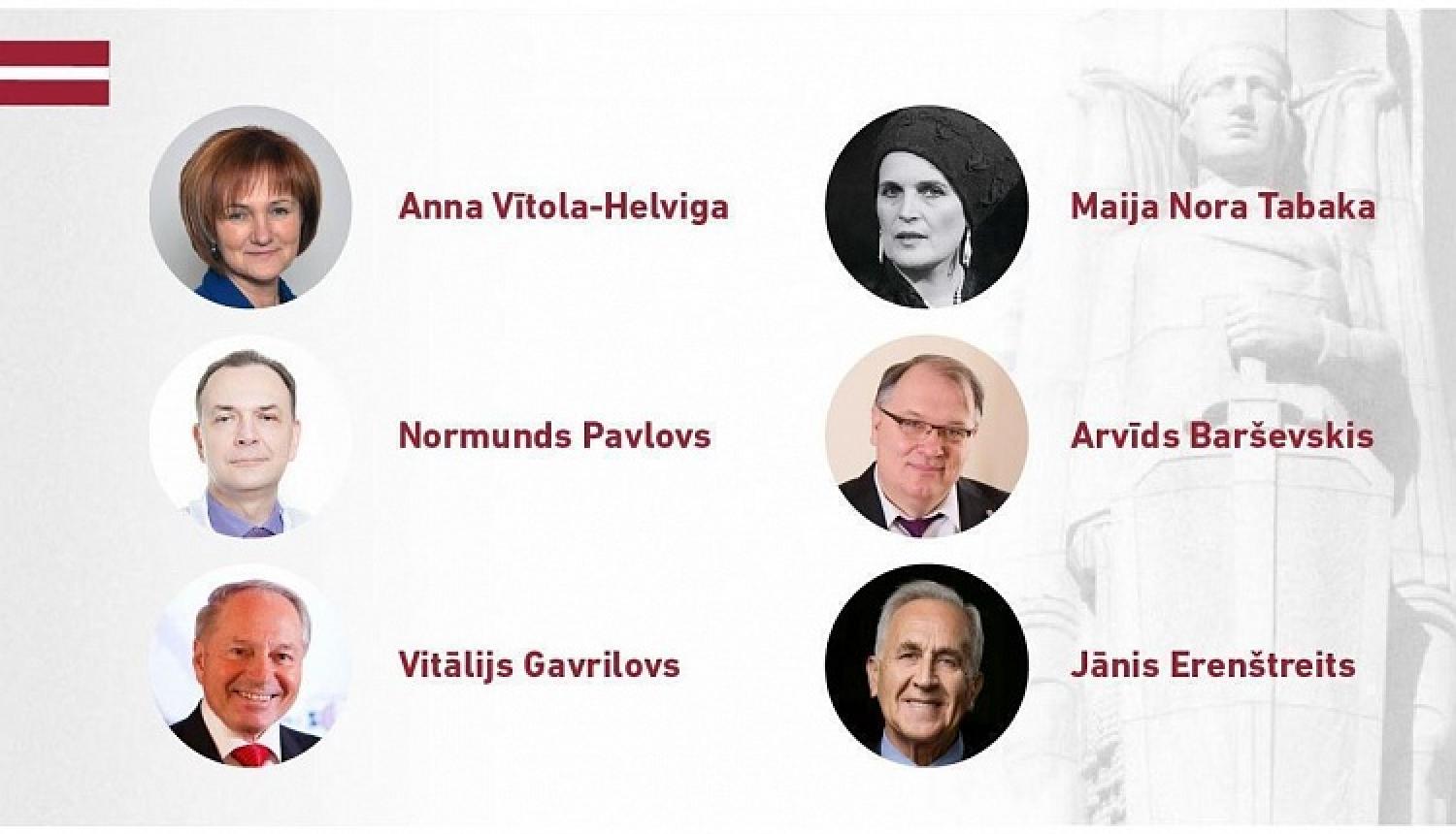Gleznotāja Maija Nora Tabaka - par izcilu ieguldījumu Latvijas mākslā un starptautiskiem sasniegumiem; Vispārējo latviešu Dziesmu un Deju svētku virsdiriģents, Rīgas Doma kora skolas ilggadējs direktors, zēnu koru kustības iniciators Jānis Erenštreits - par nozīmīgu ieguldījumu Latvijas kora mūzikas attīstībā un izcilu pedagoģisko darbību; Lauku atbalsta dienesta direktore Anna Vītola-Helviga – par ilggadēju un profesionālu darbu, kā arī inovatīvu e-risinājumu ieviešanu un attīstību lauksaimniecības, mežsaimniecības un zivsaimniecības nozarē; VSIA "Traumatoloģijas un ortopēdijas slimnīca" Mugurkaula un locītavu ķirurģijas centra virsārsts traumatologs ortopēds Normunds Pavlovs - par ilggadēju nozīmīgu ieguldījumu veselības nozarē, izcili pildot profesionālos pienākumus kaulu onkoloģisko slimību ārstēšanā, kā arī ārstu rezidentu apmācībā; Latvijas Zinātņu akadēmijas akadēmiķis bioloģijas doktors Arvīds Barševskis - par izcilu devumu Latgales un Sēlijas augstākās izglītības attīstībā un starptautiski atzītu ieguldījumu koleopteroloģijā, kā arī par Latvijas koleopteroloģijas skolas izveidošanu Daugavpilī; Latvijas Darba devēju konfederācijas prezidents Vitālijs Gavrilovs - par nozīmīgu ieguldījumu kvalitatīva sociālā dialoga veicināšanā;